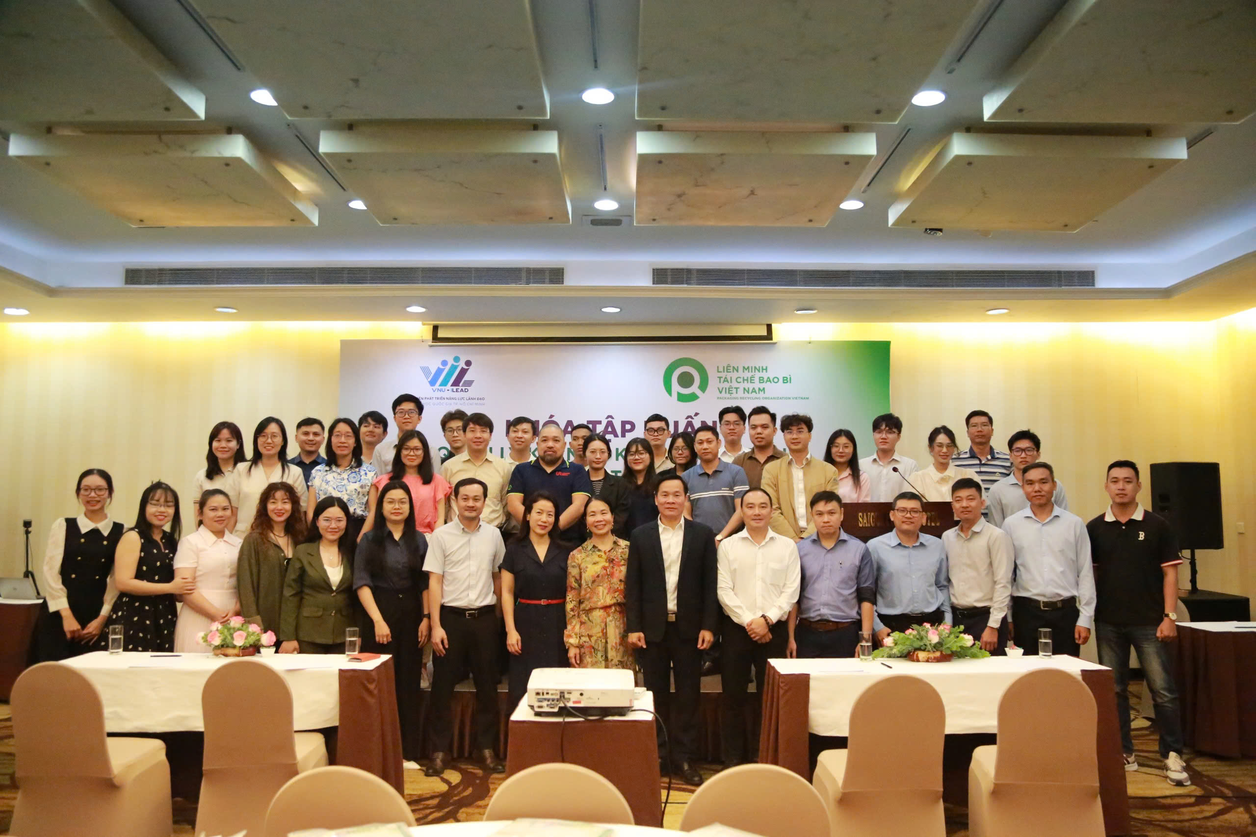 Tham dự lễ khai giảng có đại diện từ PRO Việt Nam, gồm bà Nguyễn Thị Phương Hà – Phó Chủ tịch Liên minh tái chế bao bì Việt Nam và bà Chu Thị Kim Thanh – Phó Giám đốc điều hành Công ty Cổ phần tái chế bao bì – PRO Việt Nam; về phía VNU-ILEAD có PGS.TS Hồ Quốc Bằng – Viện trưởng và TS. Lê Quốc Bảo – Phó Viện trưởng. Khoá tập huấn được dẫn dắt bởi các chuyên gia của ĐHQG-HCM đến từ Viện Môi trường và Tài nguyên, Viện Nghiên cứu Phát triển Kinh tế tuần hoàn và chuyên gia đến từ Công ty Cổ phần Chứng nhận Quốc tế (ICB). Bên cạnh đó, hơn 50 học viên là đại diện quý thành viên và các đối tác của PRO Việt Nam.