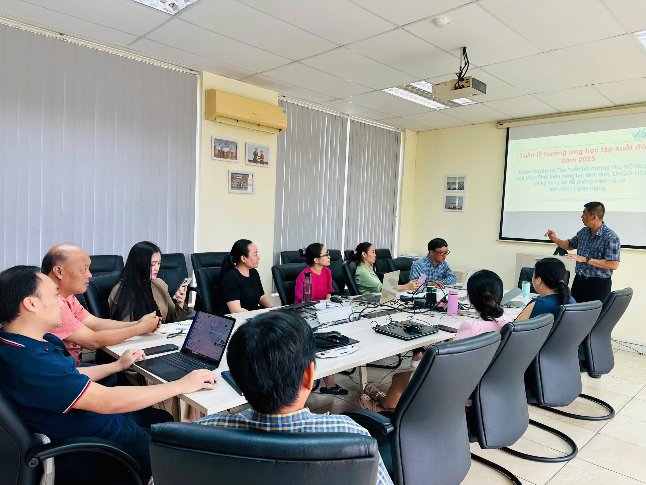 Sáng ngày 07/10/2025, Viện Phát triển năng lực lãnh đạo ĐHQG-HCM (Viện ILEAD) đã tổ chức buổi Tuyên truyền và Tập huấn bồi dưỡng kỹ năng số cho viên chức và người lao động của Viện, với chủ đề “Kỹ năng số để phòng tránh rủi ro trên không gian mạng”.